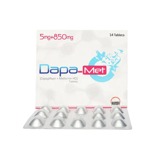 Original price Rs. 1,022 - Original price Rs. 1,022Original priceRs. 1,022Rs. 1,022 - Rs. 1,022Current price Rs. 1,022DAPA MET 5MG/850MG TABLET 2X14S