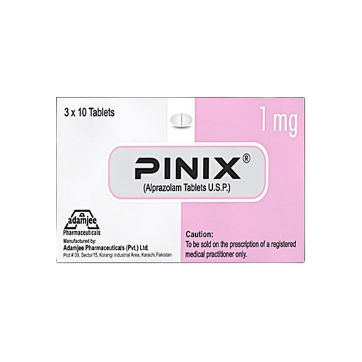 ADAMJEE PHARMACEUTICALSProduct Description Pinix 1 mg Tablets contain Alprazolam, a benzodiazepine used for the short-term treatment of anxiety and panic disorders. It wo...