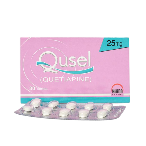 HILTON PHARMAProduct Description QUSEL 25 mg Tablets contain Quetiapine, an atypical antipsychotic used to manage schizophrenia, bipolar disorder, and major dep...