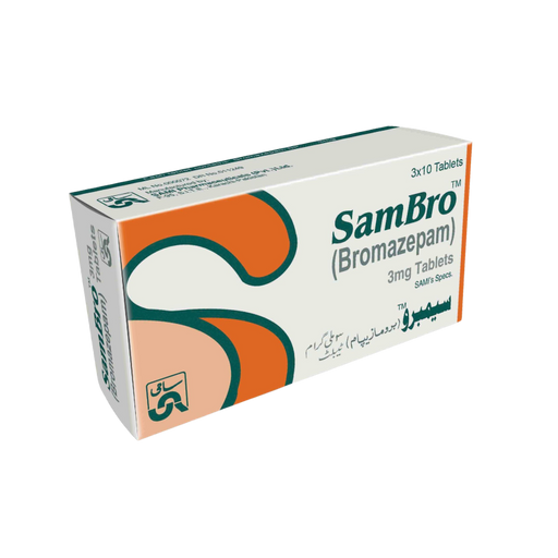 SAMI PHARMAProduct Description Sambro 3 mg Tablets contain Bromazepam, a benzodiazepine used for the short-term management of anxiety, tension, agitation, and...