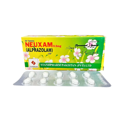 STANDPHARMProduct Description Neuxam 0.5 mg Tablets contain Alprazolam, a benzodiazepine used for the short-term treatment of anxiety, panic disorders, and p...
