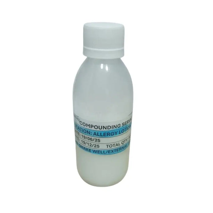 Allergy Lotion is a formulation designed to soothe irritated skin and provide relief from redness, swelling, and itching caused by allergic reactions. Its calming properties help restore skin comfort while keeping the skin moisturized and protected.