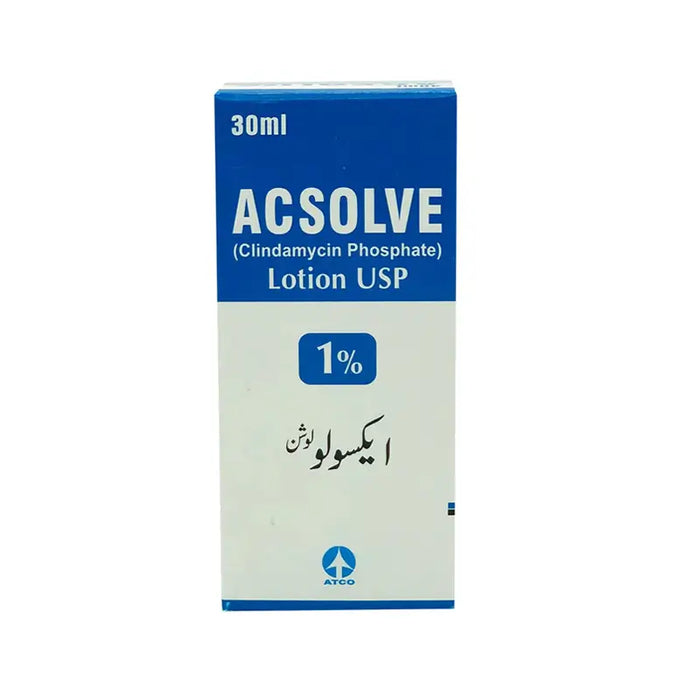 Acsolve Topical Lotion is a skincare treatment commonly prescribed for managing acne and related skin concerns. It typically contains active ingredients like clindamycin phosphate or benzoyl peroxide, making it effective for treating bacterial infections and inflammation associated with acne.